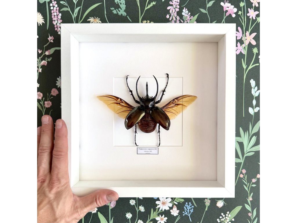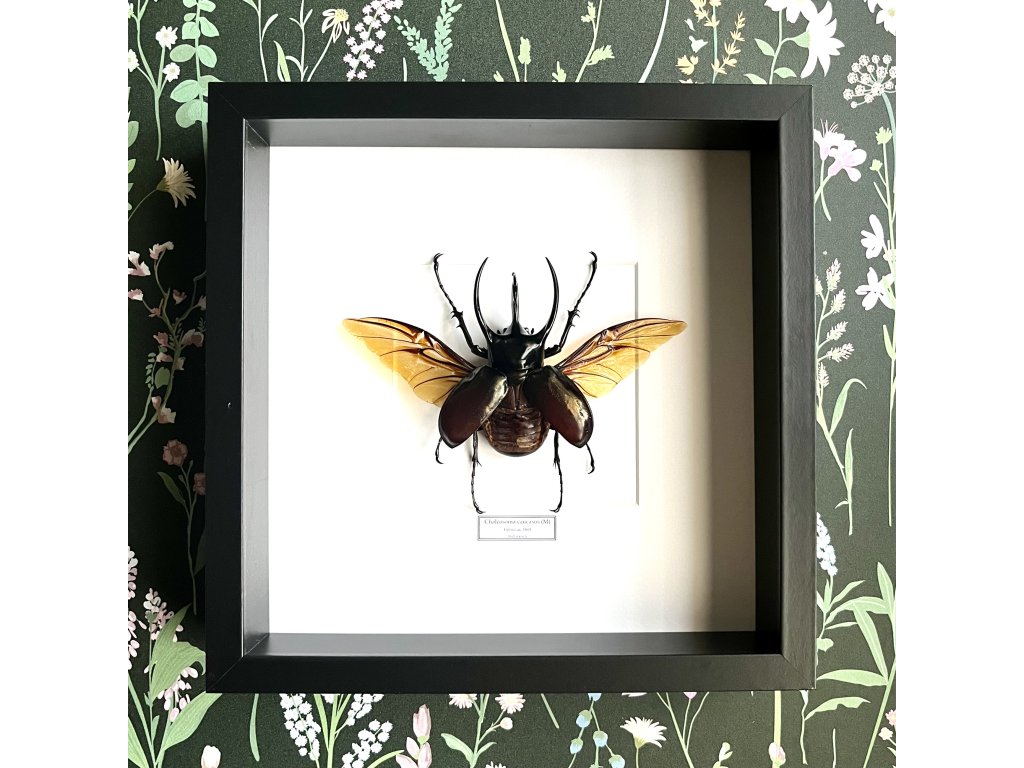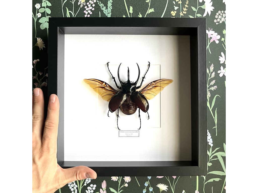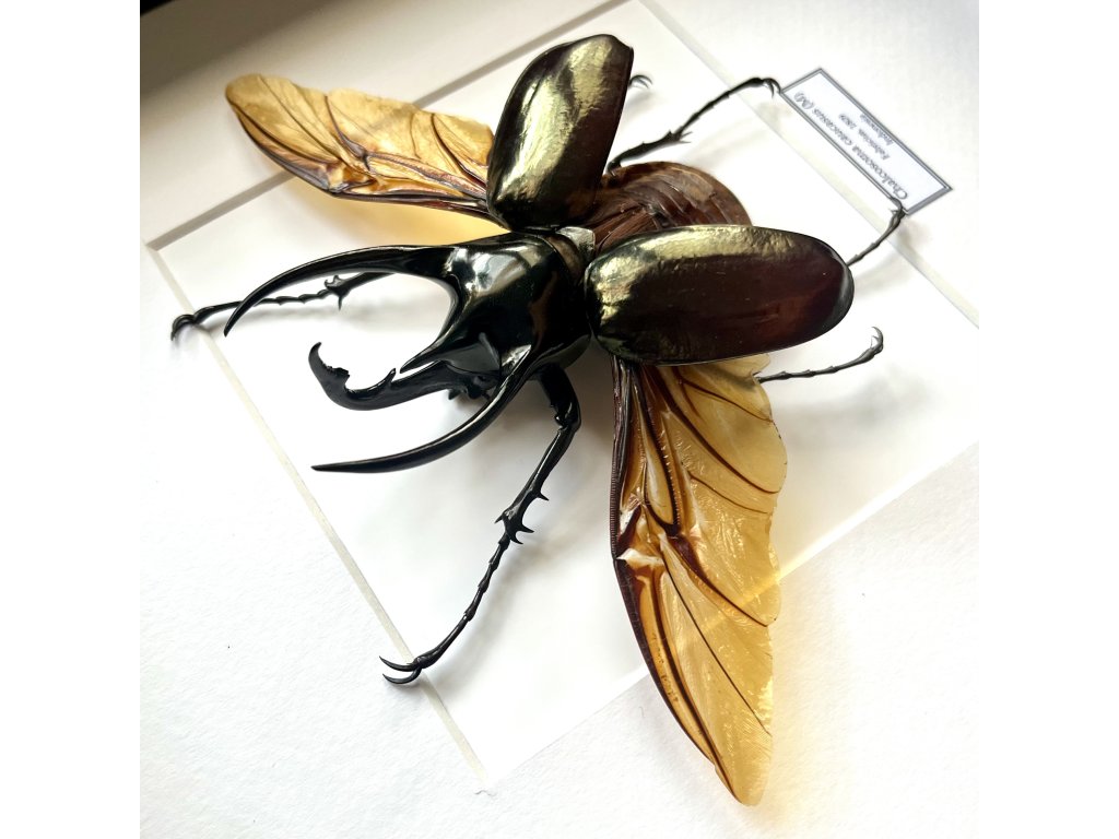 Samce tohto druhu sú známe svojou neuveriteľnou silou – v prírode medzi sebou zvádzajú súboje o dominanciu, pričom svoje dlhé predné rohy používajú na prevracanie súperov. Napriek svojmu hrozivému vzhľadu je tento chrobák neškodný, no jeho prítomnosť v zbierke či ako súčasť interiéru okamžite vyvoláva úžas a obdiv.