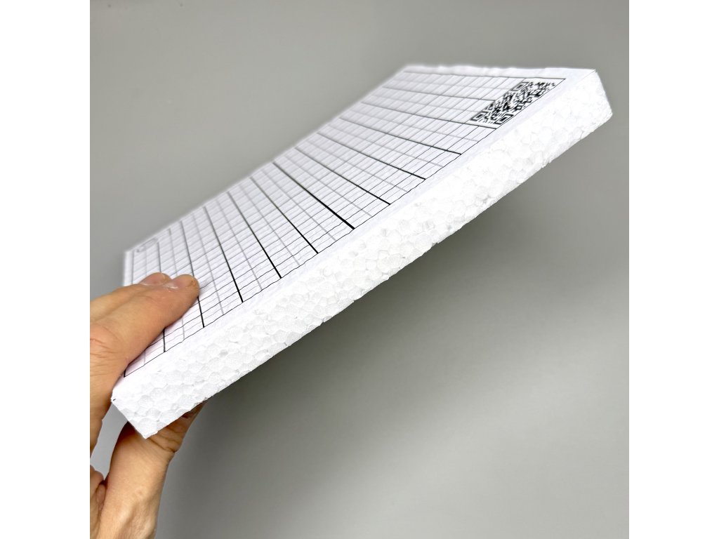 Doska je vyrobená z polystyrénu s hrúbkou 2 cm, ktorý umožňuje jednoduché zapichovanie špendlíkov bez poškodenia materiálu a zároveň poskytuje dostatočnú stabilitu pri práci.