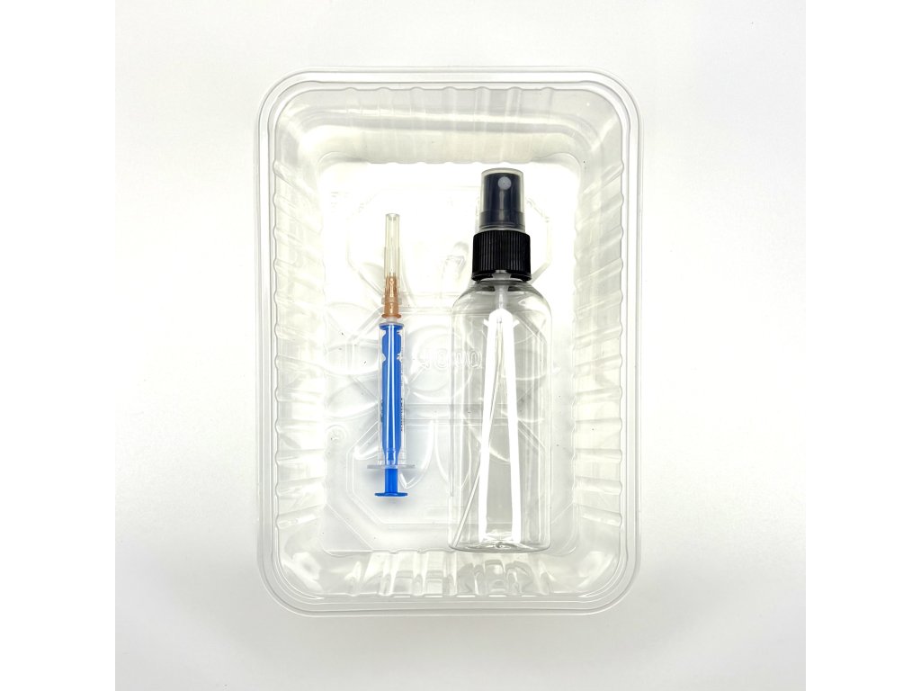Striekačka s ihlou, pomocou ktorej v prípade potreby vpichneme tekutinu do exemplára, ak je stále príliš tuhý. V prípade, že sa exemplár navlhčil dostatočne už v boxe, striekačku nie je potrebné použiť.