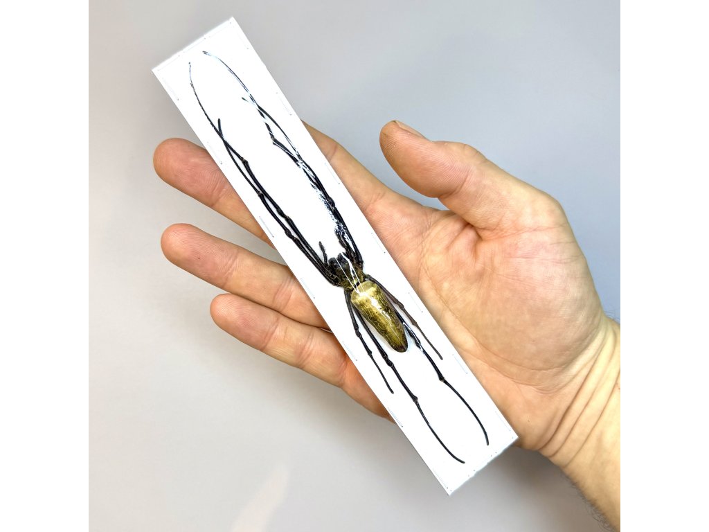 Exemplár pavúka Nephila pilipes v suchom a zabalenom, tzv. sáčkovanom - nevypreparovanom stave.