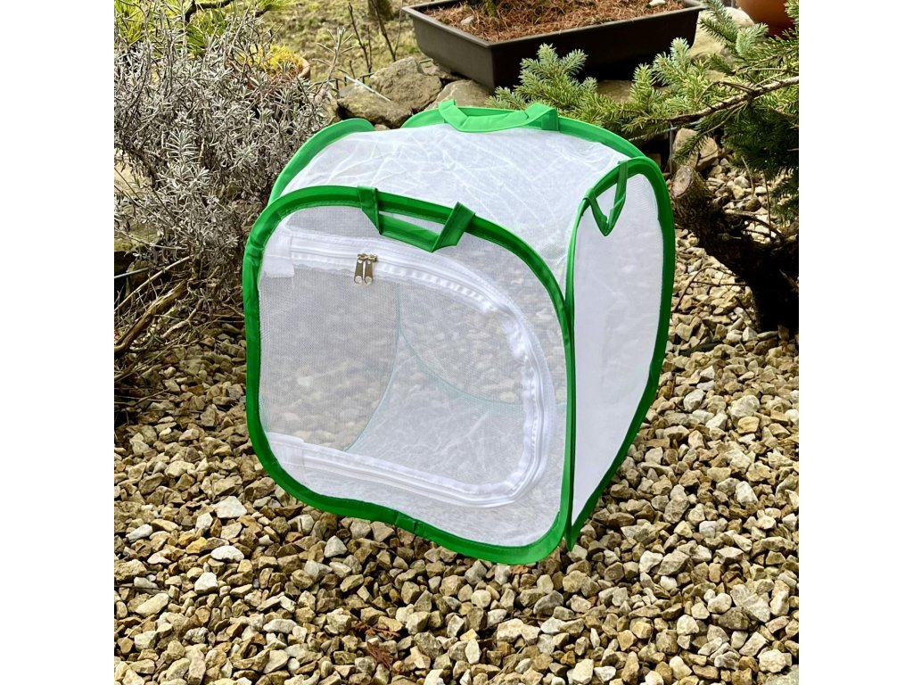 Uzatvárateľná klietka na zips s rozmermi 30x30x30cm je ideálna pre chov motýľov alebo iného hmyzu.