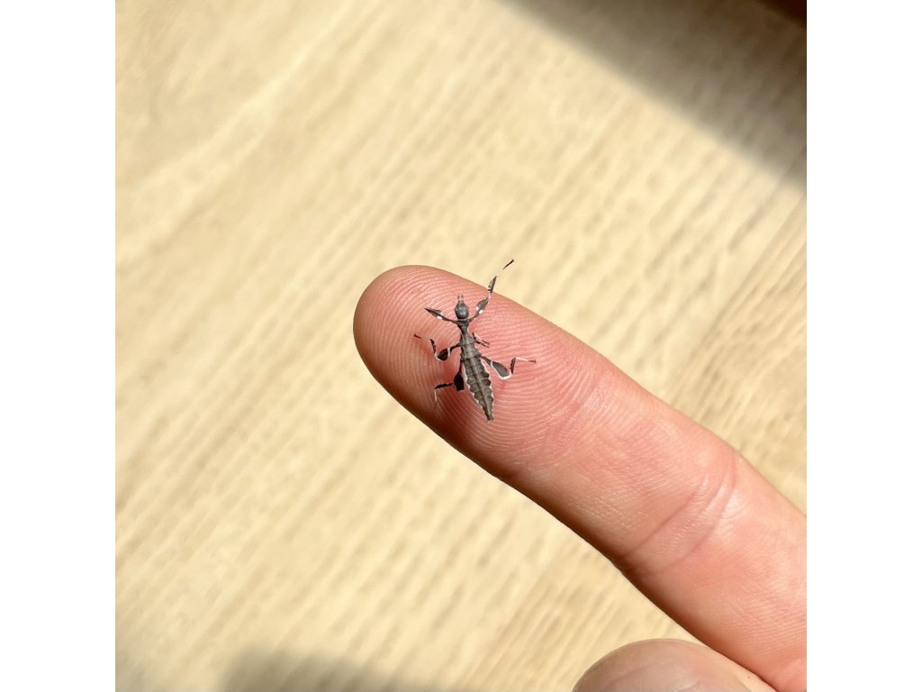 Pri chove hmyzu je prirodzené, že nie všetky vajíčka sa vyliahnu a nie všetky nymfy prežijú do dospelosti. Priemerná úspešnosť od vajíčka po dospelca býva približne 10–20 % v bežných podmienkach domáceho chovu. Odporúčame preto zvážiť väčší počet vajíčok, najmä ak s chovom začínate alebo plánujete získať niekoľko dospelých jedincov.