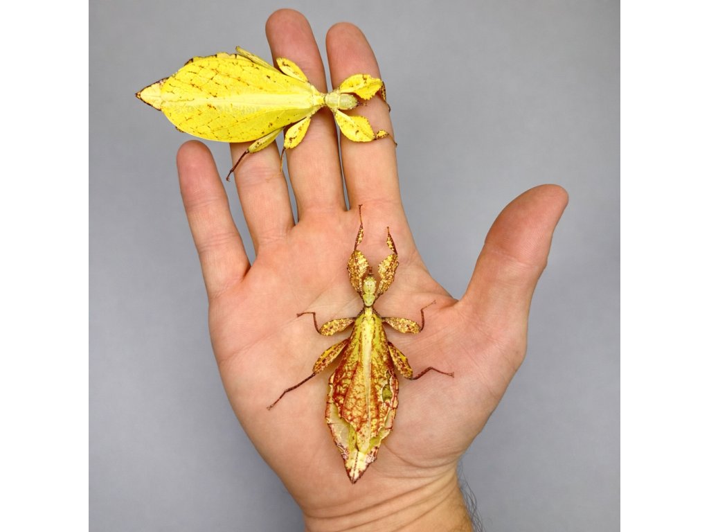 Mladé jedince listoviek sa nazývajú nymfy. Podľa zvleku sa označujú L1, L2, L3 atď., podľa čoho sú veľké približne od 1,5 cm do 4 cm, zelenej farby. Zasielame podľa objednávky mladé kusy od L1 do L3, alebo L4 do L6, ktoré vyberáme podľa aktuálnej dostupnosti. V dospelosti dosahujú približne 8 cm.