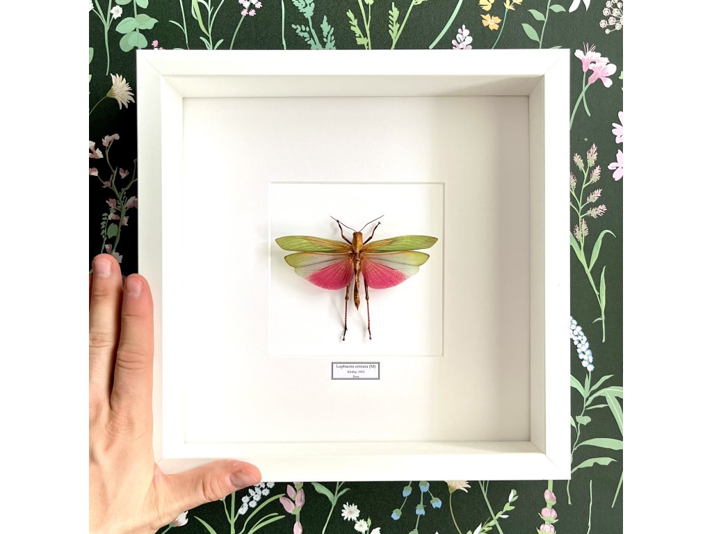 Lophacris cristata je jedinečný tropický koník, ktorý vás očarí svojím farebným kontrastom. Jeho telo žiari sviežou zelenou farbou, ktorá symbolizuje dokonalé splývanie s tropickou vegetáciou, zatiaľ čo jeho zadné krídla sú zdobené žiarivou ružovou, čo vytvára nezameniteľný a pútavý vzhľad.