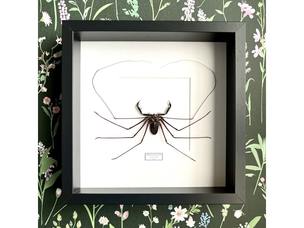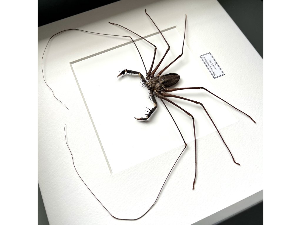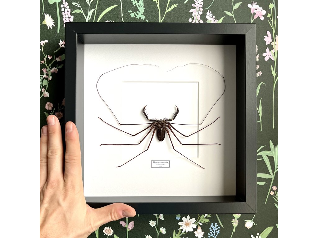 Objavte fascinujúci svet nočných tvorov s jedinečným exemplárom Phryna grossetatai z Peru, tajomného pavúkovca, ktorý akoby vystúpil z pradávnych dôb. Tento zástupca bičovcov pochádza z tropických pralesov, kde sa pohybuje v tme pomocou extrémne dlhých pedipálp – senzorických orgánov, ktoré mu umožňujú vnímať svet tak, ako to nedokáže žiadny iný pavúkovec.